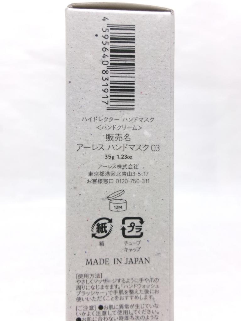 | コメント | ☆★香水・コスメ特集★☆ アーレス Hydrector Hand Mask #SAYU ハイドレクター ハンドマスク サユ <ハンドクリーム> 定価2,970円(税込) 【容量】 35g 【内容】 ブラックカラント、ジャスミン、ムスクをベースにしたフローラルムスク 【状態】 未使用 ※香水・化粧品の返品は、原則お受つけできません。 |