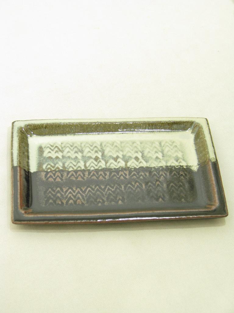 | コメント | 松形恭知さんの器 黒釉掛分押紋長角皿 完売品 定価¥8250(税込)のお品 【実寸(cm)】長さ24.7×16.9 高さ2 【色】茶×薄グレージュ等 【デザイン】厚手 やや重みあり 【状態】少々くすみ、表角など小キズ |