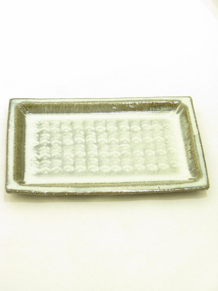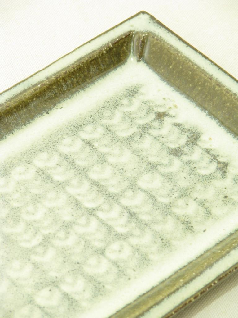 | コメント | 松形恭知さんの器 長角皿 【実寸(cm)】長さ25.3×17 高さ2 【色】カーキみの茶×薄グレー 【デザイン】厚手 やや重みあり 【状態】製造上の生地ムラ ほんの少々小キズ、くすみ |