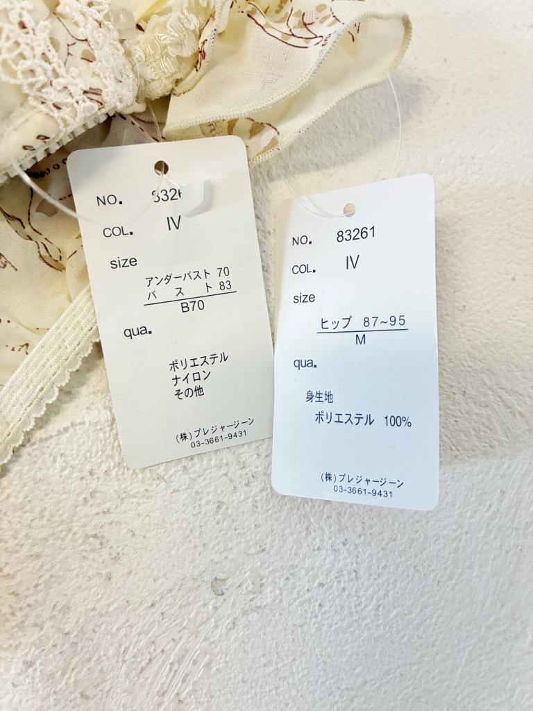 | コメント | 【サイズ】B70/M 【実寸】アンダーバスト70 バスト83 ヒップ87-95 【材質】ポリエステル・ナイロン・その他/身生地:ポリエステル100% 【状態】新品 【色・デザイン】アイボリー ホック1段×3段階 胸パッド入り・取り外し可能 肩ひも取り外し可能 |