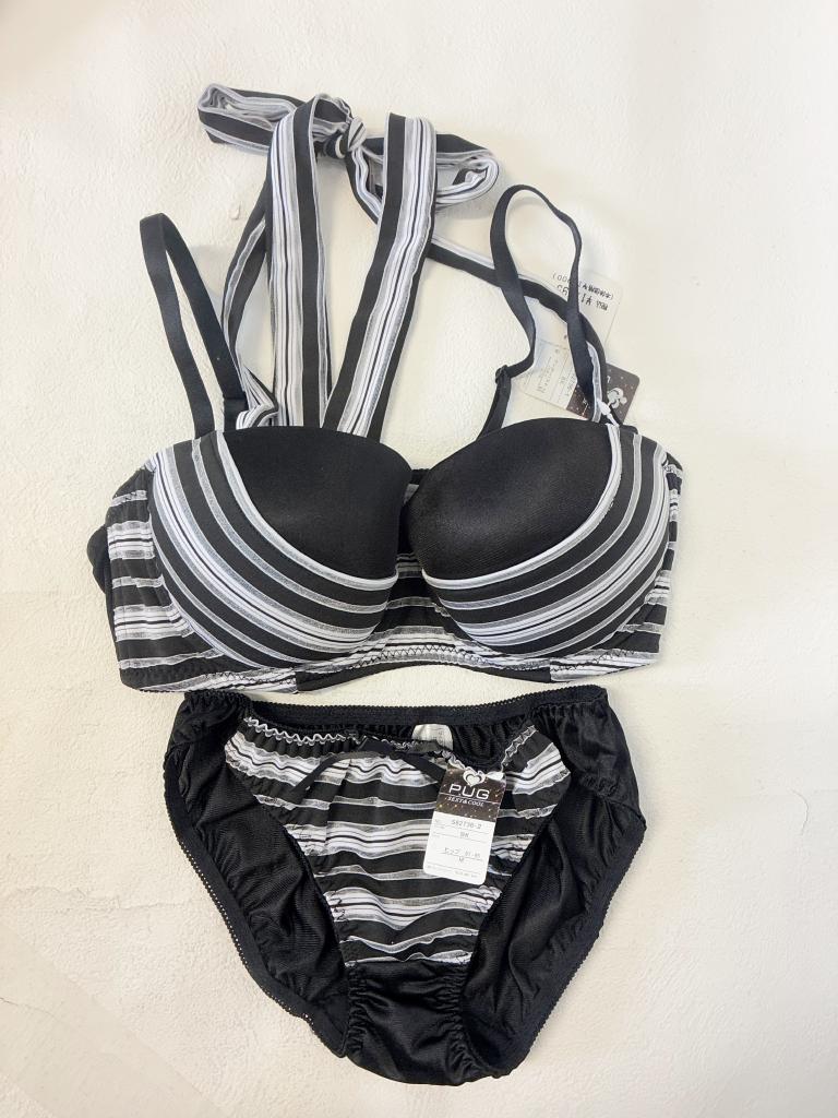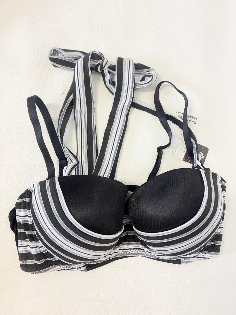 | コメント | 【サイズ】C70/M 【定価】1995円 【実寸】アンダーバスト70 バスト85 ヒップ87-95 【材質】ポリエステル・ポリウレタン・その他/(前身地)ポリエステル90% ポリウレタン10%(後身地)ポリエステル100% 【状態】新品 【色・デザイン】ブラック×ホワイト ホック2段×3段階 胸パッド入り・取り外し可能 肩ひも・ホルター取り外し可能 ブラジャー&ショーツ |