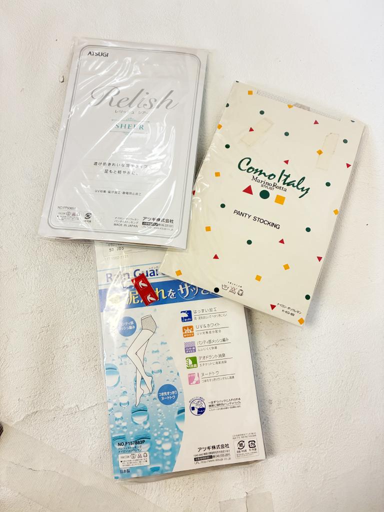 | コメント | 【サイズ】M-L 【定価】525円/2足で680円/600円 【実寸】ヒップ85-98 【材質】ナイロン・ポリウレタン 【状態】未使用品 【色・デザイン】3つセット ・スキニーベージュ シアーレジメンタル UV対策 吸汗加工 静電防止 ・ロゼベージュ ・シェリーベージュ 3足組 はっすい加工 UV&ホワイト パンティ部メッシュ編み デオドラント消臭 ヌードトゥ |