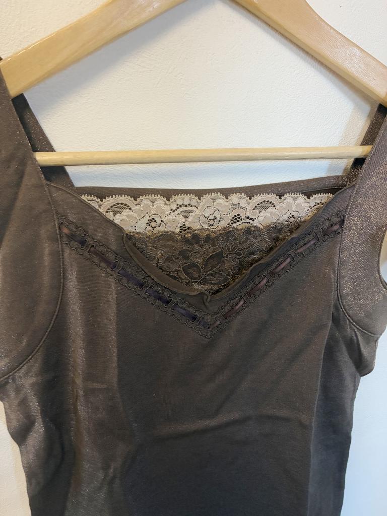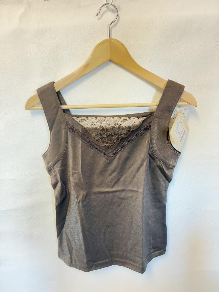 | コメント | 【サイズ】40 【定価】8190円 【実寸】バスト81 着丈44 肩幅31 【材質】綿80% ナイロン20% 【状態】新品 【色・デザイン】ブラウン×ラメ 両サイドスリット |