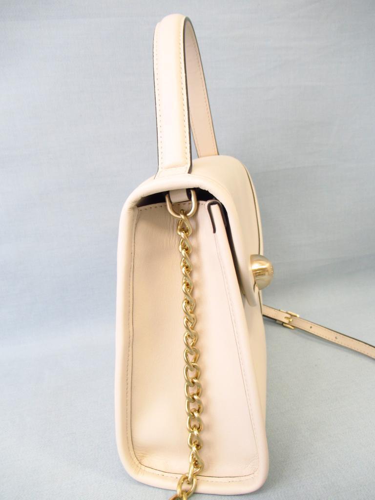 | コメント | 「サークルシルエットハンドバッグ」 【材質】天然皮革 【実寸サイズ】縦20×横20.5~22.2×まち8持ち手の長さ103~117.5調節可 【デザイン】オフホワイト ショルダーバッグ 2way 外ポケット×1 内ポケット×3 【状態】金具にキズ、くすみ少々 使用感少々 定価27,500円(税込) |