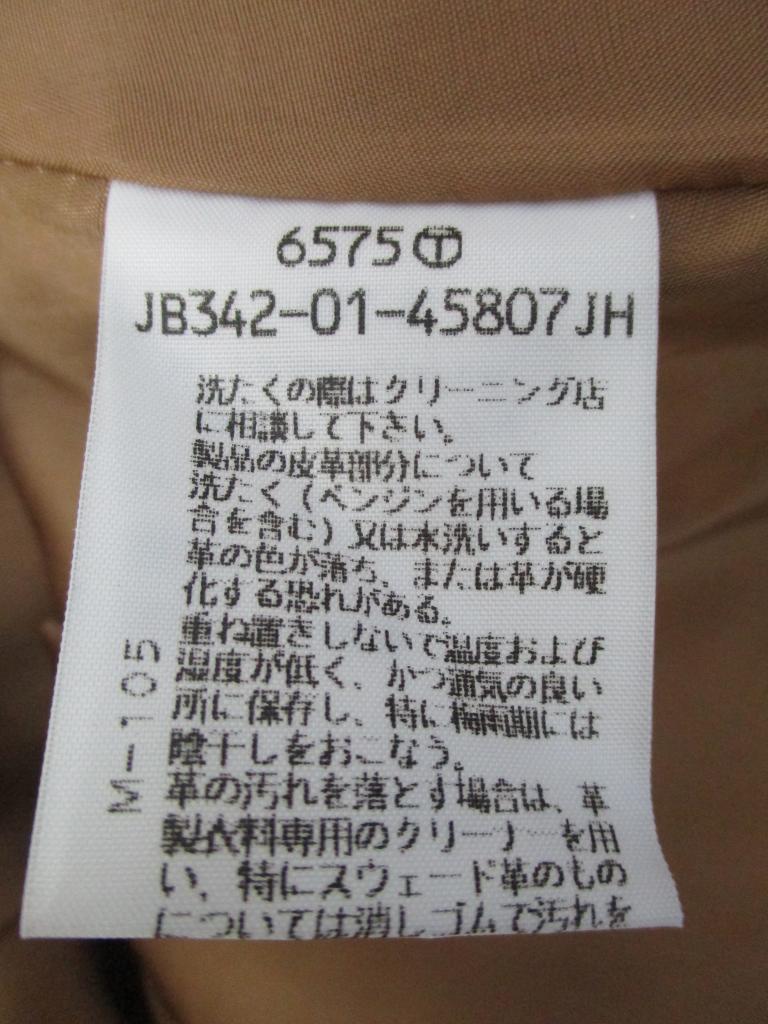 | コメント | ★羊革半コート♪ 【材質】表羊革/裏地ポリエステル100% 【記載サイズ】38 【実寸サイズ】B88㎝ 着丈54㎝ 肩幅37㎝ 袖丈56 ㎝ 【生地説明】やわらかい羊革地 【色・柄】茶 【デザイン特徴】前ボタン止め ポケット前2か所 裏地あり 【商品状態】特になし 【クリックポスト発送不可】 |