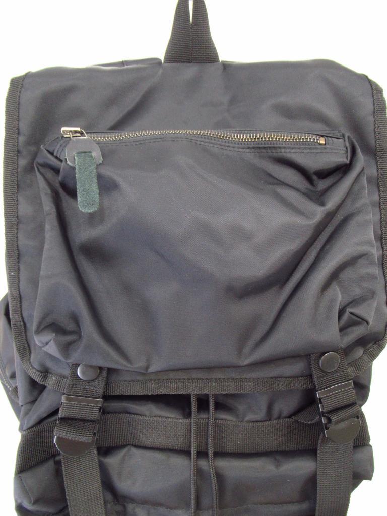 | コメント | 【材質】ナイロン100 【実寸サイズ】背面:縦40×横32×まち17 【デザイン】リュック 黒 メンズ(?)バックパック 外ポケット×4 巾着タイプ+スナップ開閉 【状態】くすみ、小キズあり 使用感中くらい |