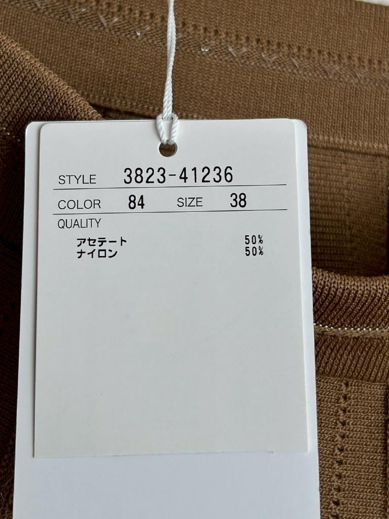 | コメント | 【実寸約】W66 スカート丈82 【サイズ表示】38 【アイテム】スカート 【素材%】アセテート50 ナイロン50 【色】ブラウン 【ウエスト状態】ゴム 【ポケット有無】なし 【状態・シミやホツレ等】なし 【着用感】新品未使用 【備考】 |