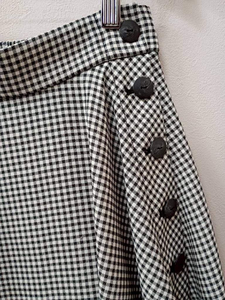 | コメント | ギンガムチェックフレアスカートショーパンツ 【メーカーサイズ】0 【実寸(cm)】W64~ H94 スカート丈43.5 【素材】表・裏地:ポリエステル 【デザイン・色】白 黒 チェック柄 後ろカギホック・ファスナー 前飾りボタン ウエスト後のみゴム 裏地インナーパンツ 【状態】少々毛羽立ち #おすすめ #7223526 |