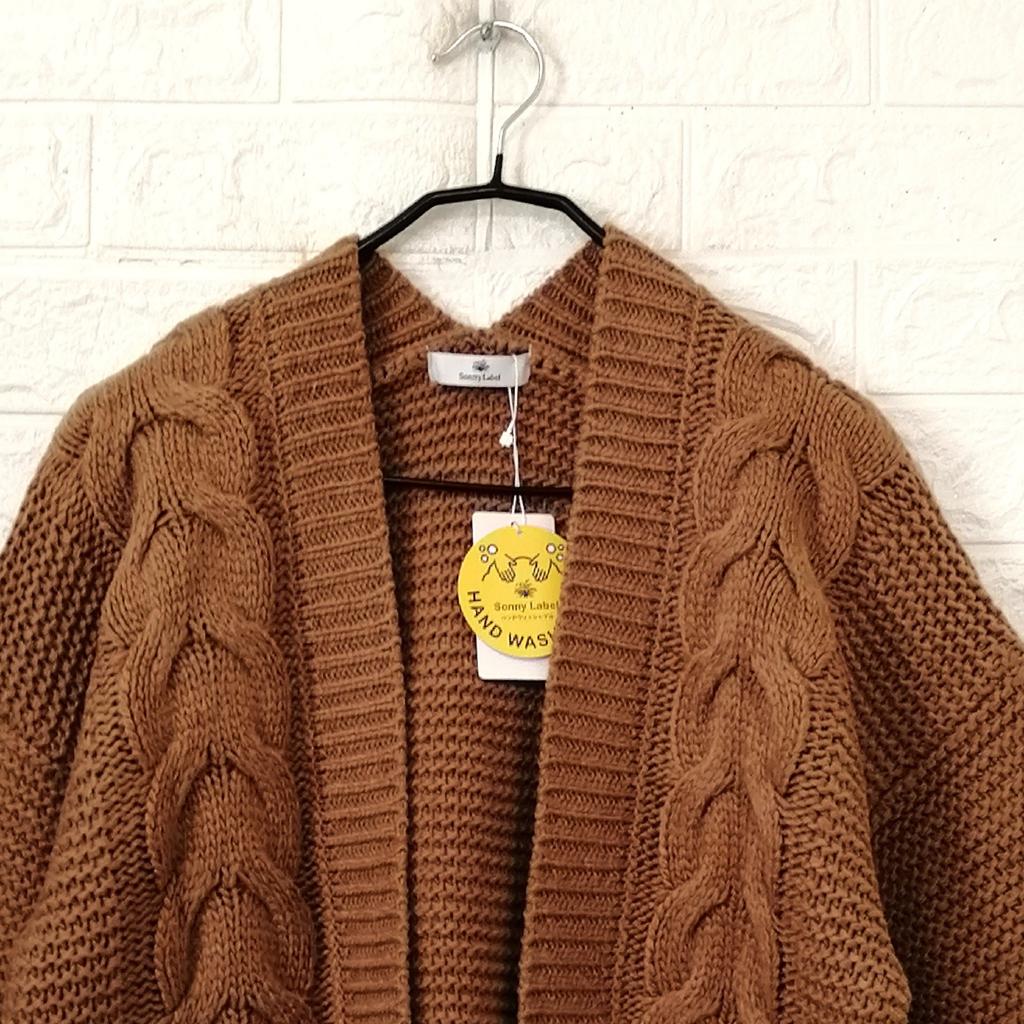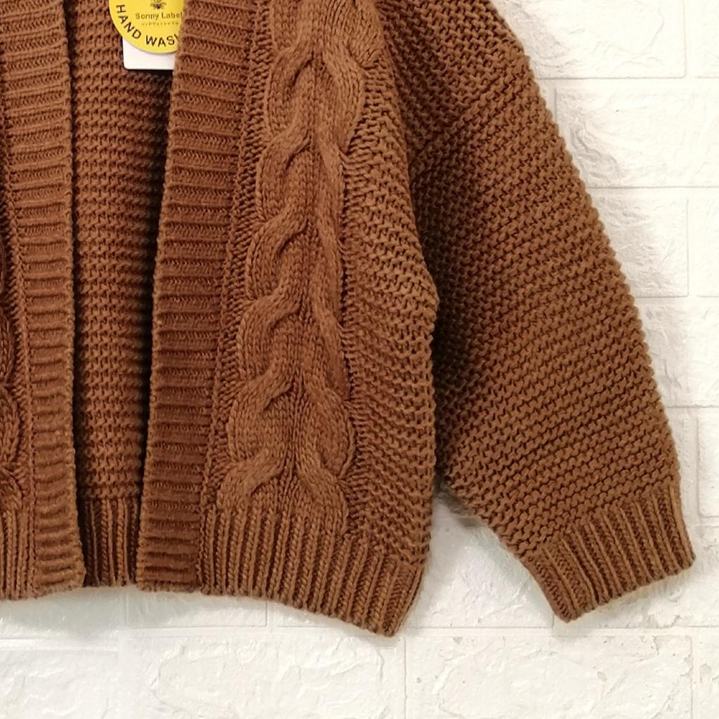 | コメント | 【サニーレーベル アーバンリサーチ】 『ケーブル ガウン ニット』 ◆[サイズ]=FREE ◆[実寸(平置きcm)]=身幅57 裄丈66 着丈53 ◆[色]=キャメルブラウン ◆[デザイン]=フロントボタンレス ケーブル編み ショート丈 ◆[状態]=新品タグ付き 7,400円+税のお品です ※枚目の画像のシールは目印です ◆[材質]=枚目画像参照 |