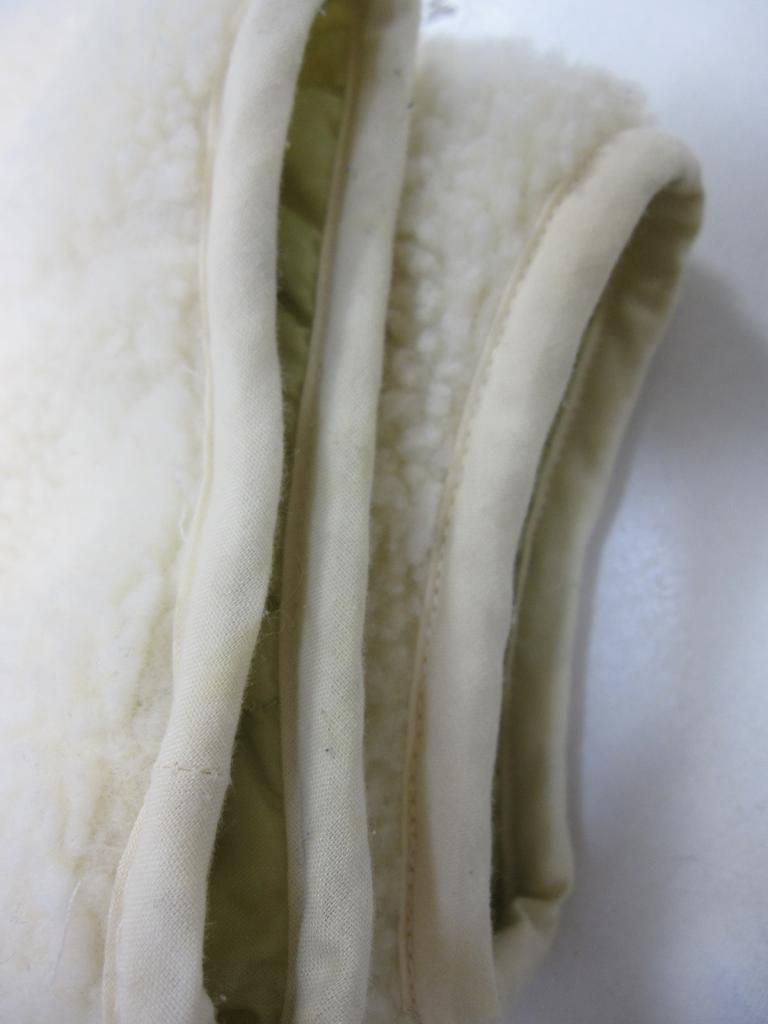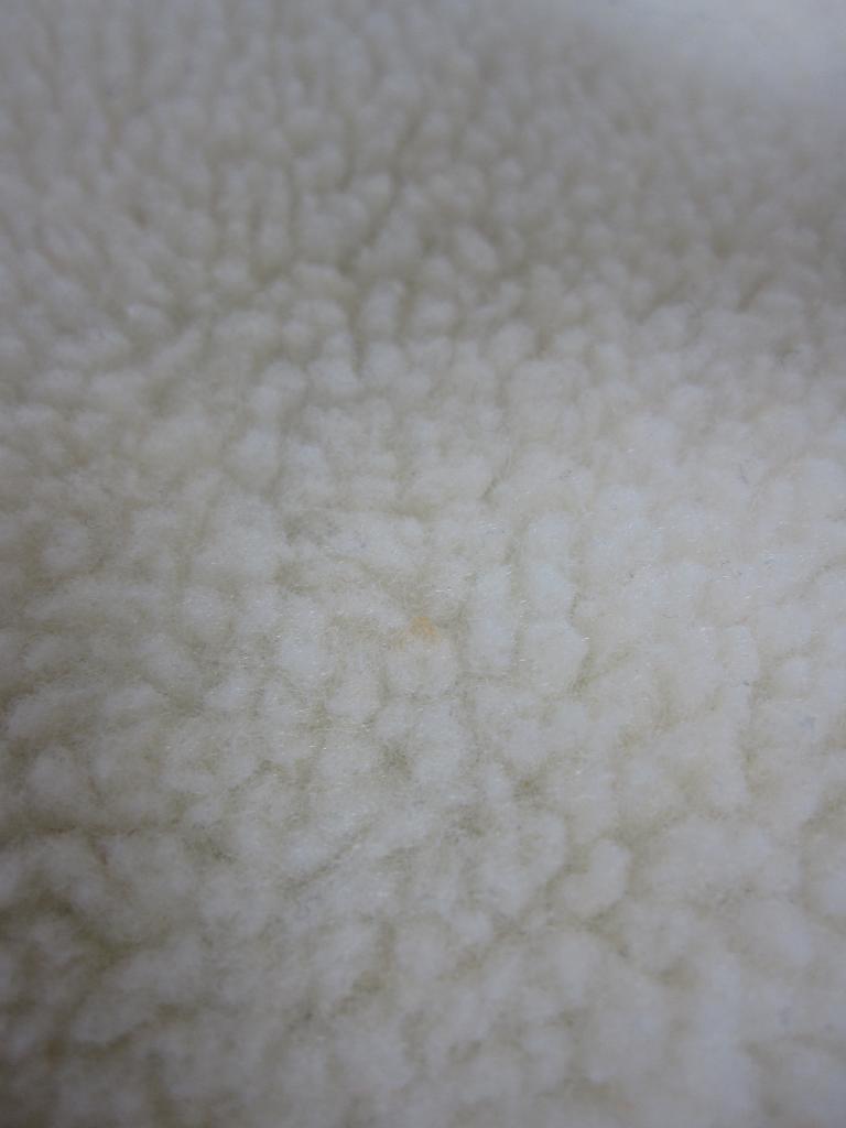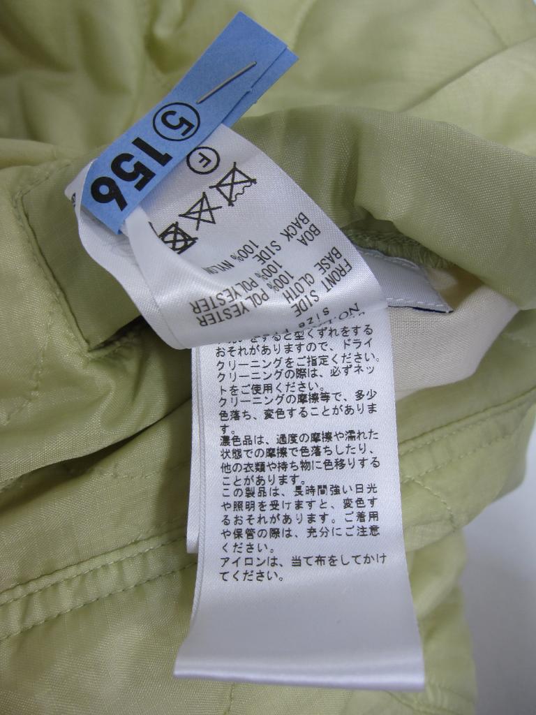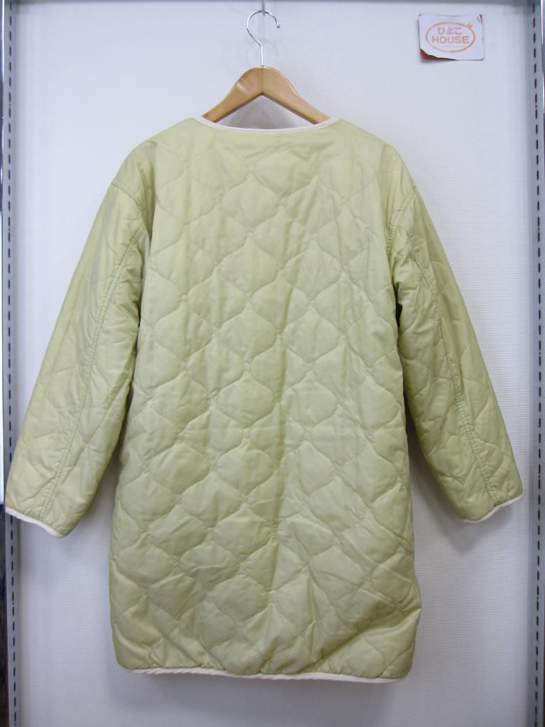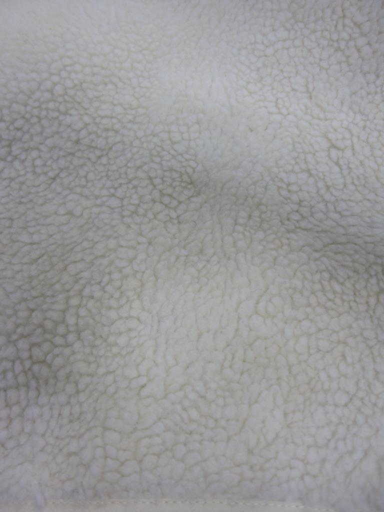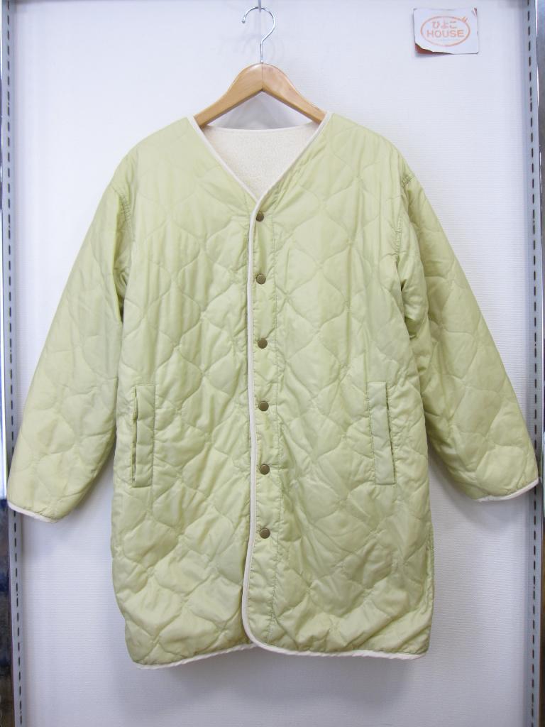 | コメント | 【材質】表側基布:ポリエステル100、ボア部分:ポリエステル100、裏側:ポリエステル100 【実寸サイズ】バスト111肩幅54.5袖丈52着丈84 【デザイン】アイボリーボア地と薄い黄みどり、キルティングナイロン地のリバーシブル ノーカラーVネックコート 前スナップ、前左右ポケット(両面) 【状態】右前薄いオレンジのシミ2㎜ ボアのヘタリ少々 袖口パイピング部分くすみ、毛玉あり 着用感・色あせ中くらい |