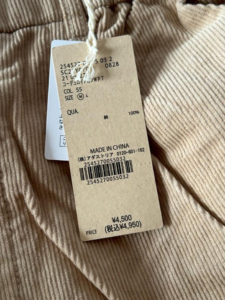 | コメント | 【定価】¥4950 【サイズ】M 【実寸】ウエスト66~ 股上34 股下62 【色・デザイン】ベージュ やわらかい コーデュロイ |