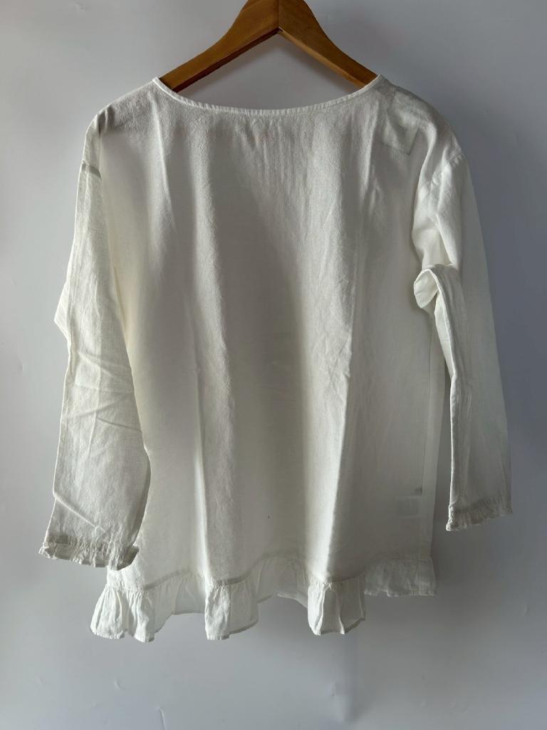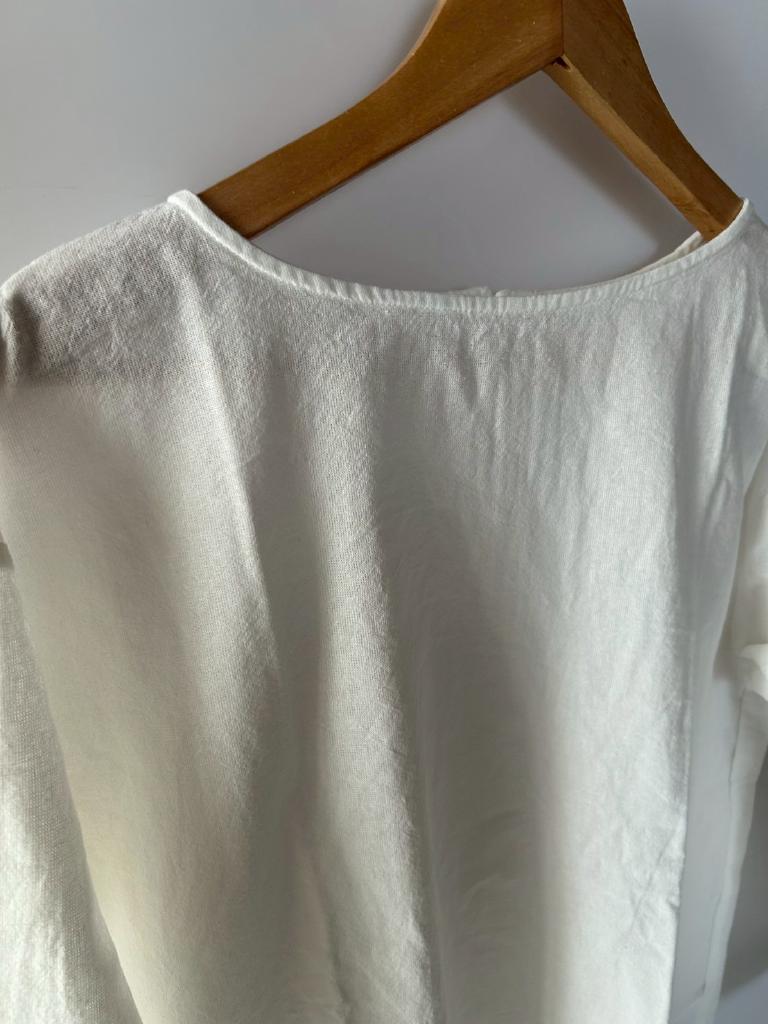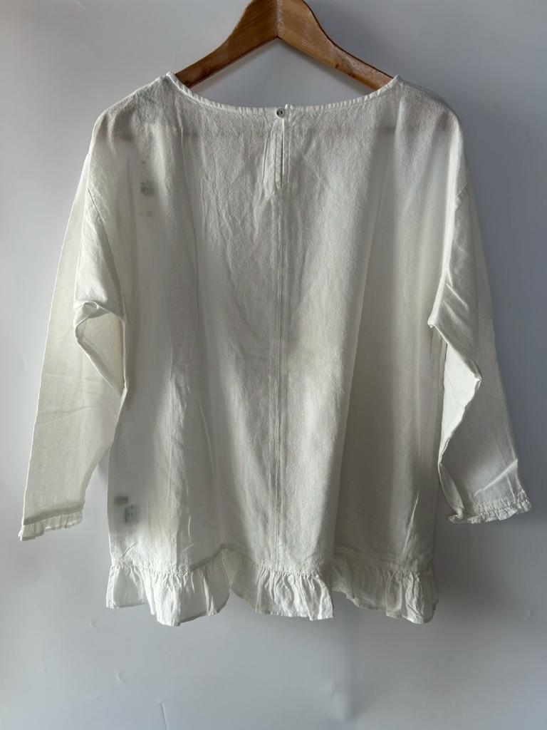 | コメント | 【定価】¥3850 【サイズ】M 【実寸】バスト106 袖丈47 着丈64 肩幅52 【色・デザイン】アイボリー 袖・裾フリル |