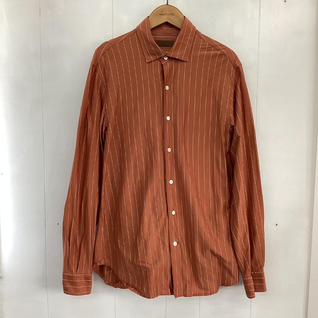 | コメント | 【サイズ】【メンズ】Sサイズ 【実寸(㎝)】身幅48 袖丈63 肩幅41 丈72 【素材(%)】※タグ参照 【裏地(%)】なし 【色】ブラウン系 【デザイン】テラコッタ色 前ボタン 袖口ボタン 【状態】使用感あり(小) 背中シミあり |