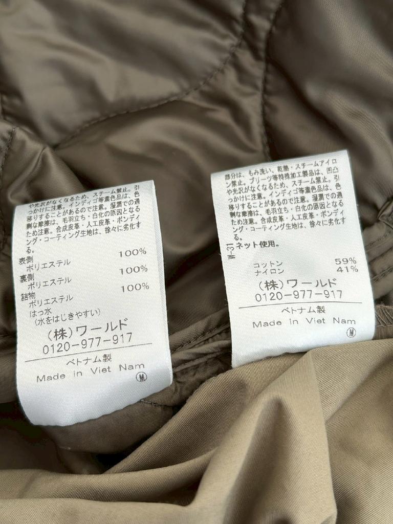 | コメント | 【実寸約cm】B 110 着丈 70 肩幅 29 袖丈 51 【サイズ】2 【素材%】コットン59 ナイロン41 ライナー 表地・裏地・詰物 ポリエステル100 【色】カーキ 【アイテム】ブルゾン 【ポケット】前2 【ボタン】前立て裏 袖口裏 【状態・シミやホツレ等】特になし 【着用感】少 【備考】ライナー・フード取り外し可 |