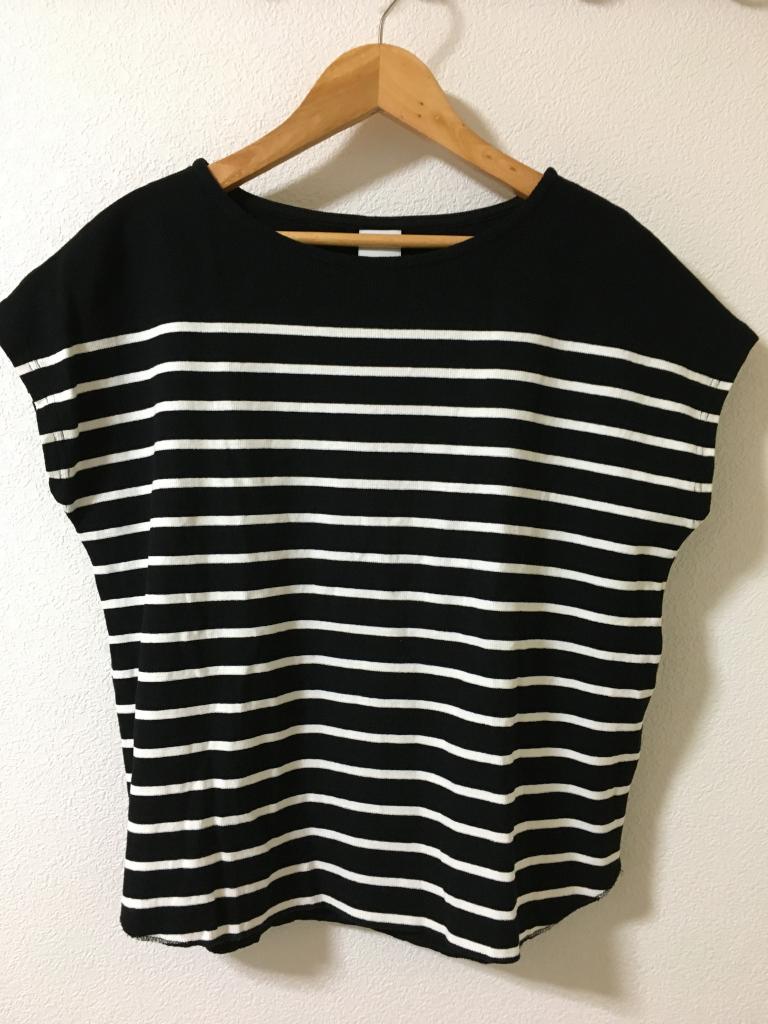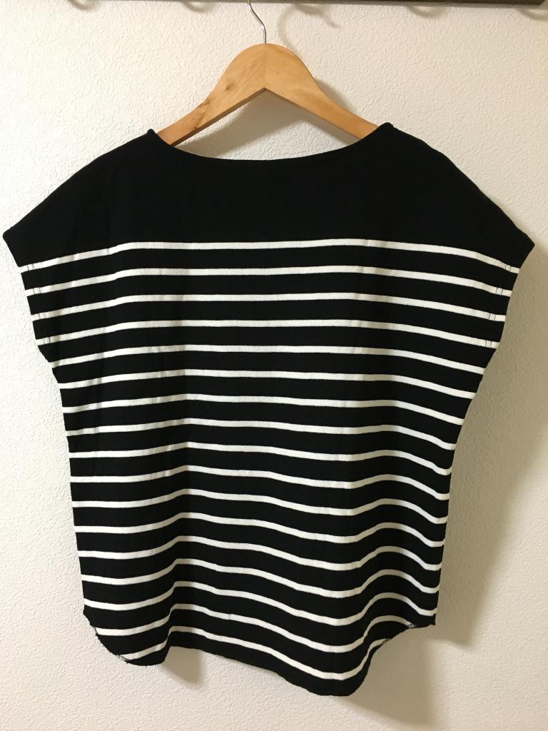 | コメント | 表示サイズ:one 黒×白のボーダー 全体的に毛羽ほんの少々 全体的にキレイです 着丈)前49後52 身幅50 ゆき丈28 |