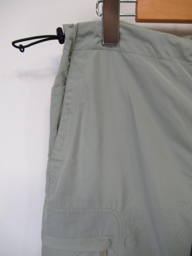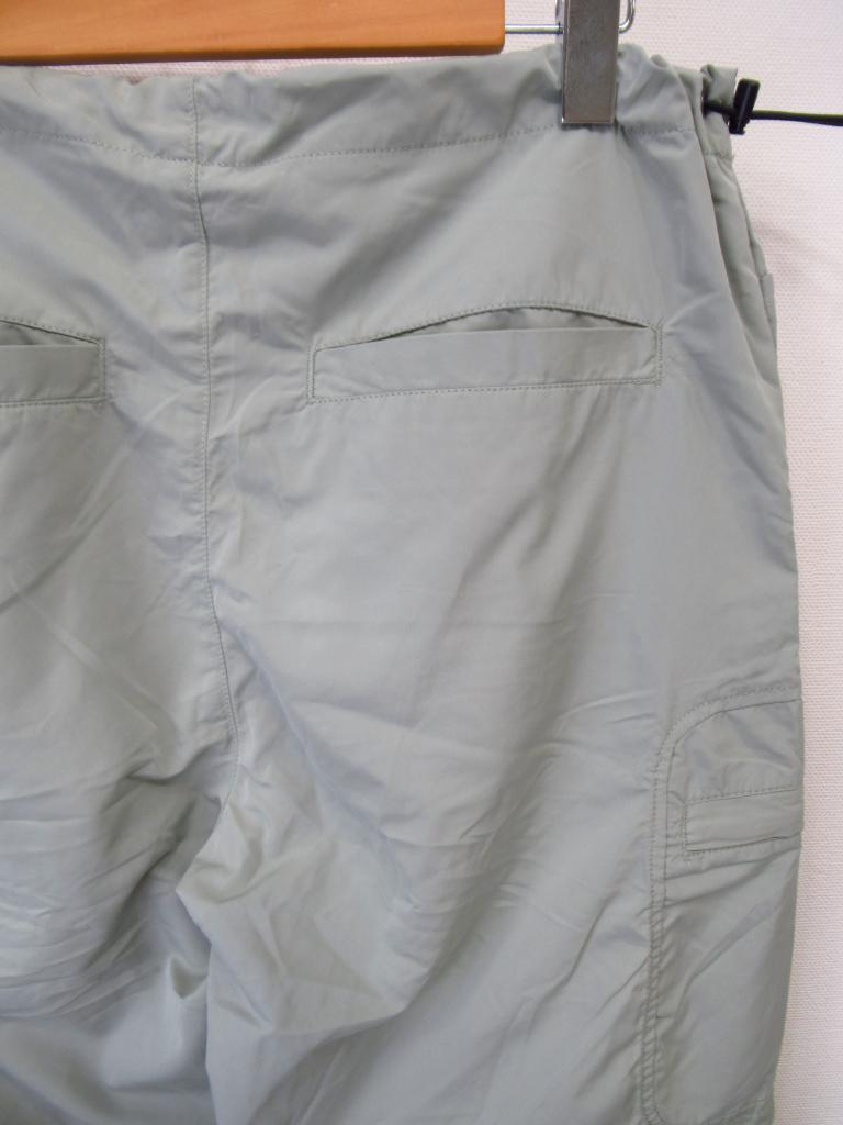 | コメント | 「GATHERED WAIST CARGO PANTS」 【材質】ポリエステル100 【実寸サイズ】ウエスト94パンツ丈52~105.5ヒップ103股上28股下23.5~74.5裾幅28.6太もも幅30 【デザイン】ライトグリーン 膝まわりの隠しファスナーで上下にセパレートする2WAY ウエスト総ゴム 薄手 後両サイド・太ももポケット 定価14,300円(税込) 2023年製 |