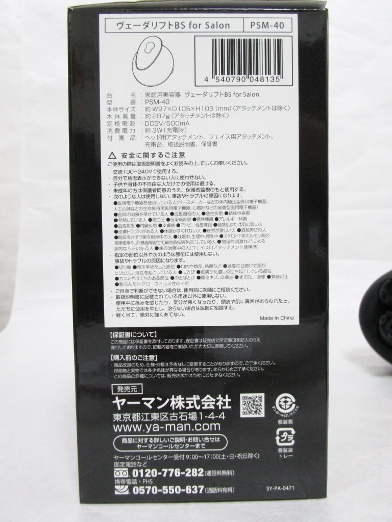 | コメント | ☆★美容機器・コスメ特集★☆ ヤーマン ヴェーダリフト BS for Salon PSM-40/定価21,780円(税込) 【サイズ】 約W97×D105×H103mm(アタッチメント除く) 【重量】 約287g(アタッチメント除く) 【付属品】 ヘッド用アタッチメント、フェイス用アタッチメント、充電台、取扱説明書 【内容】 音波洗浄により毛穴の奥から汚れをかき出し清潔な頭皮に。さらに頭皮をもみ上げ、直接お顔をもみ出すことでリフトケア。プロによるヘッドスパ手技を再現した心地良い体感を自宅で